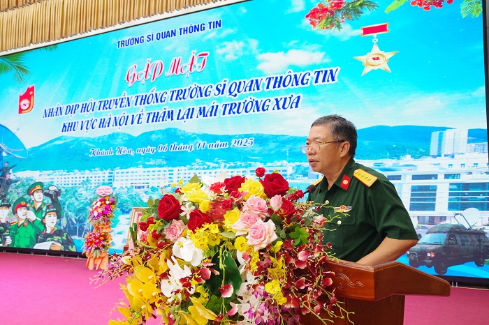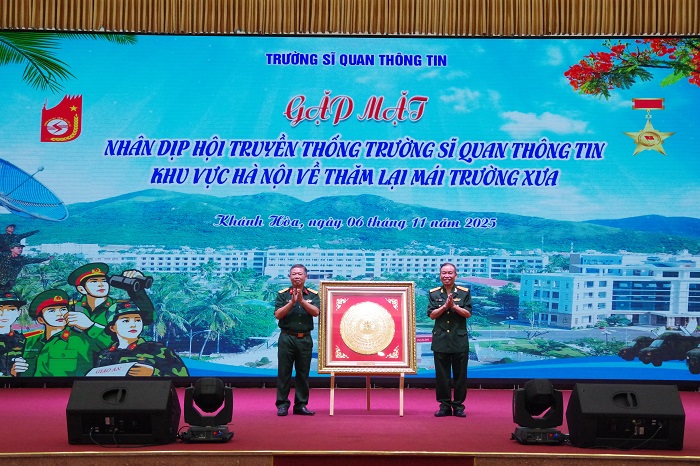 Ngày 6/11, tại Khánh Hòa, Trường Sĩ quan Thông tin tổ chức gặp mặt kỷ niệm 74 năm Ngày truyền thống Nhà trường (11/11/1951 -11/11/2025) nhân dịp Hội truyền thống Trường Sĩ quan Thông tin khu vực Hà Nội về thăm lại mái trường xưa. Dự buổi gặp mặt có đồng chí Đại tá, PGS, TS Lê Xuân Hùng, Hiệu trưởng Nhà trường; các đồng chí trong Ban Giám hiệu; đại diện các cơ quan trong Nhà trường; cùng 40 hội viên Hội truyền thống khu vực Hà Nội.