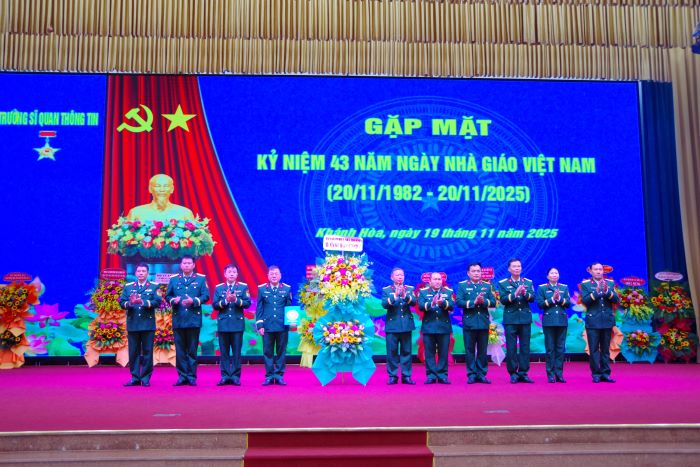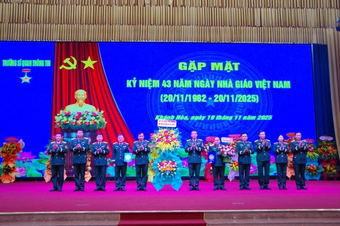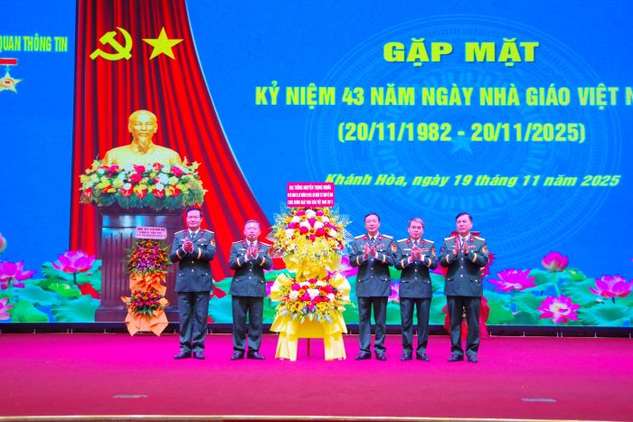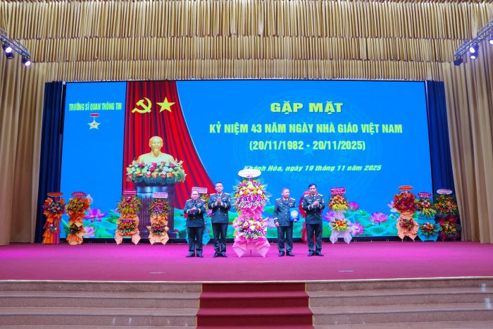 Chiều 19/11, Trường Sĩ quan Thông tin tổ chức Gặp mặt kỷ niệm 43 năm Ngày Nhà giáo Việt Nam (20/11/1982 - 20/11/2025). Dự và chủ trì buổi gặp mặt có Đại tá Lê Xuân Hùng, Hiệu trưởng Nhà trường; Đại tá Vũ Duy Hải, Chính ủy Nhà trường. Tham dự có các đồng chí trong Ban Giám hiệu; các đồng chí nguyên là Thủ trưởng Ban Giám hiệu, các Nhà giáo Nhân dân, Nhà giáo Ưu tú, Phó Giáo sư đã nghỉ hưu tại tỉnh Khánh Hòa; các đồng chí giảng viên, cán bộ quản lý giáo dục và học viên, sinh viên trong Nhà trường.